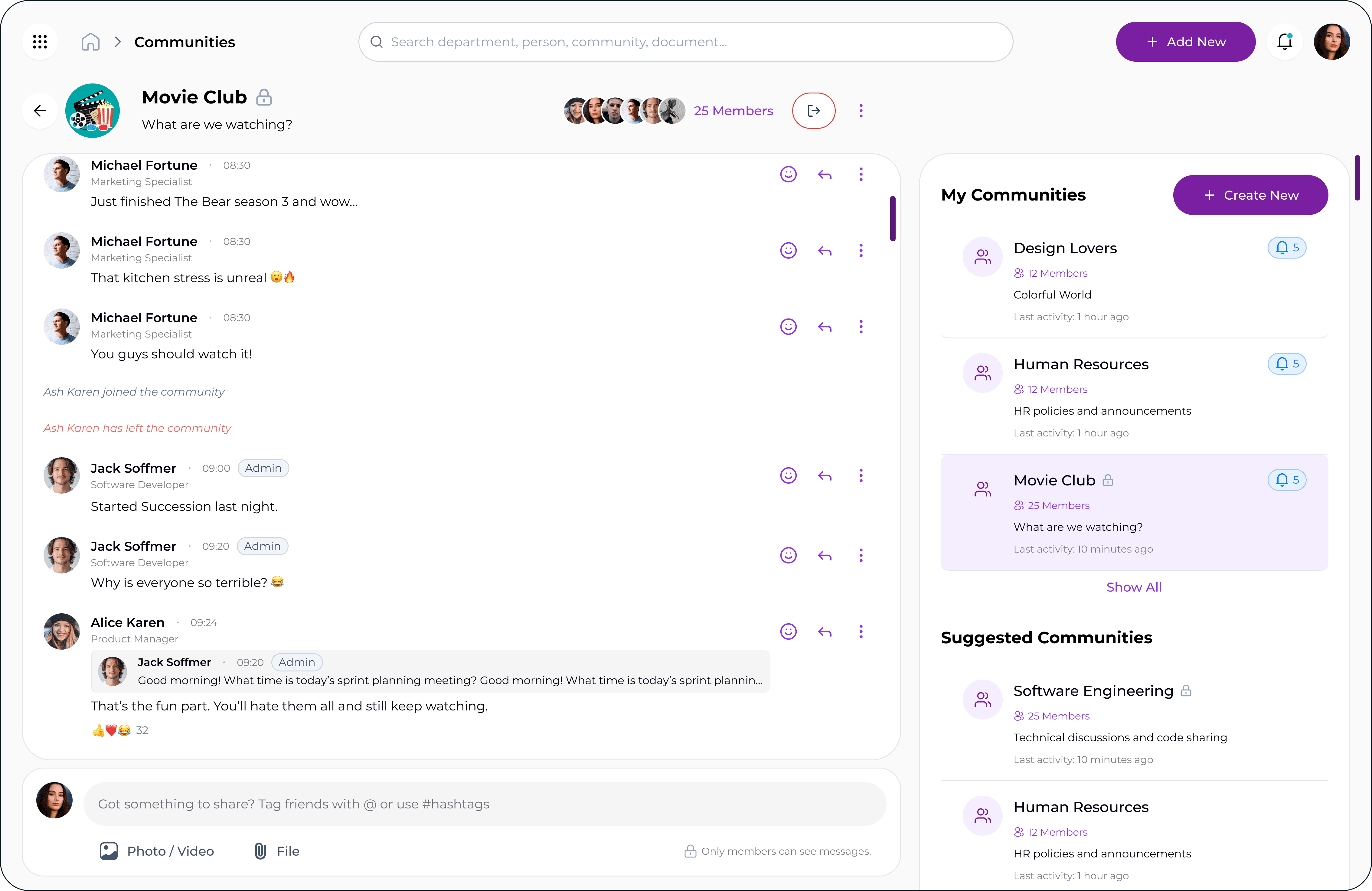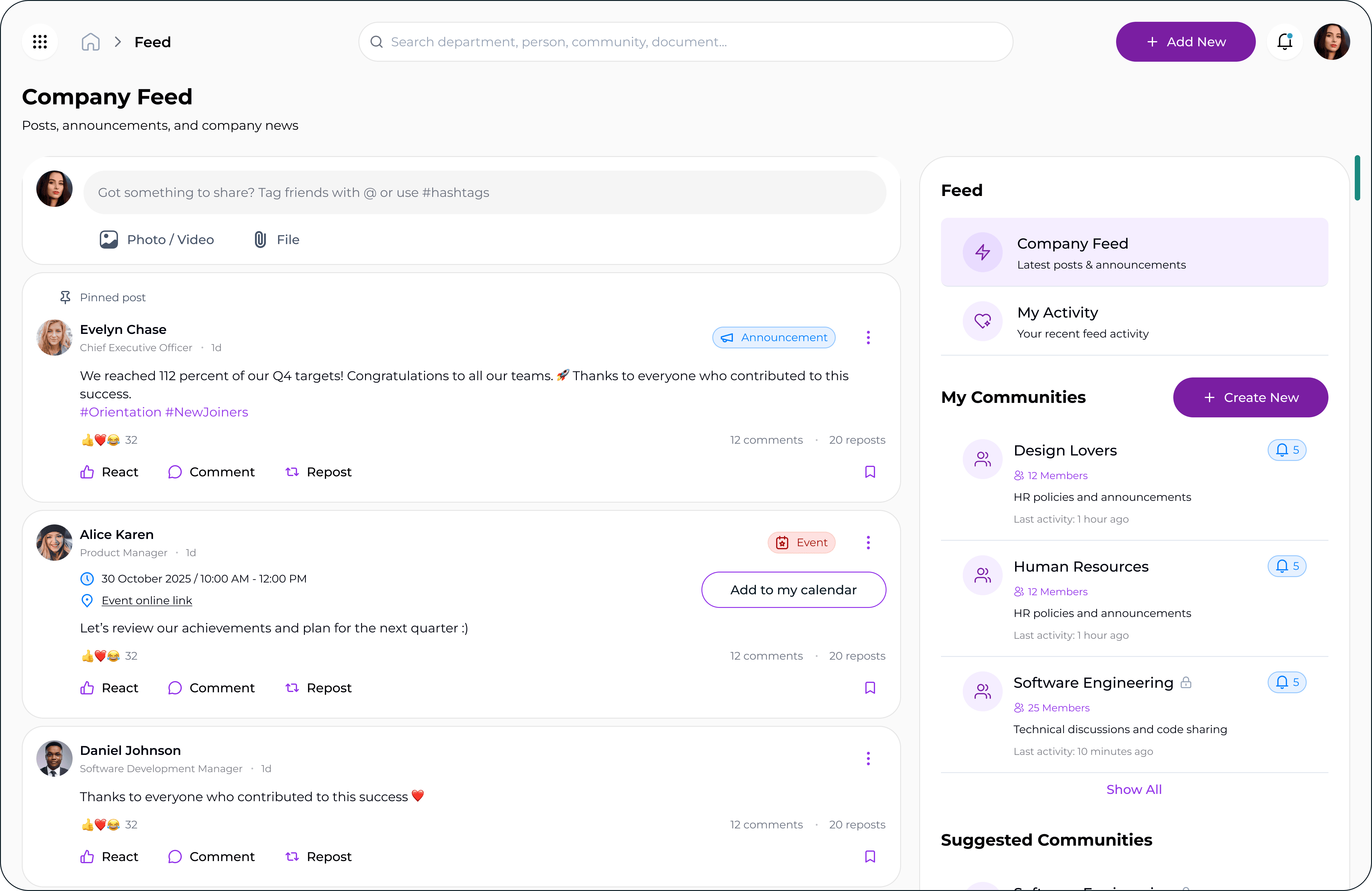 Communities create space for shared interests, hobbies, and non-work conversations—helping employees connect naturally and feel more engaged at work.