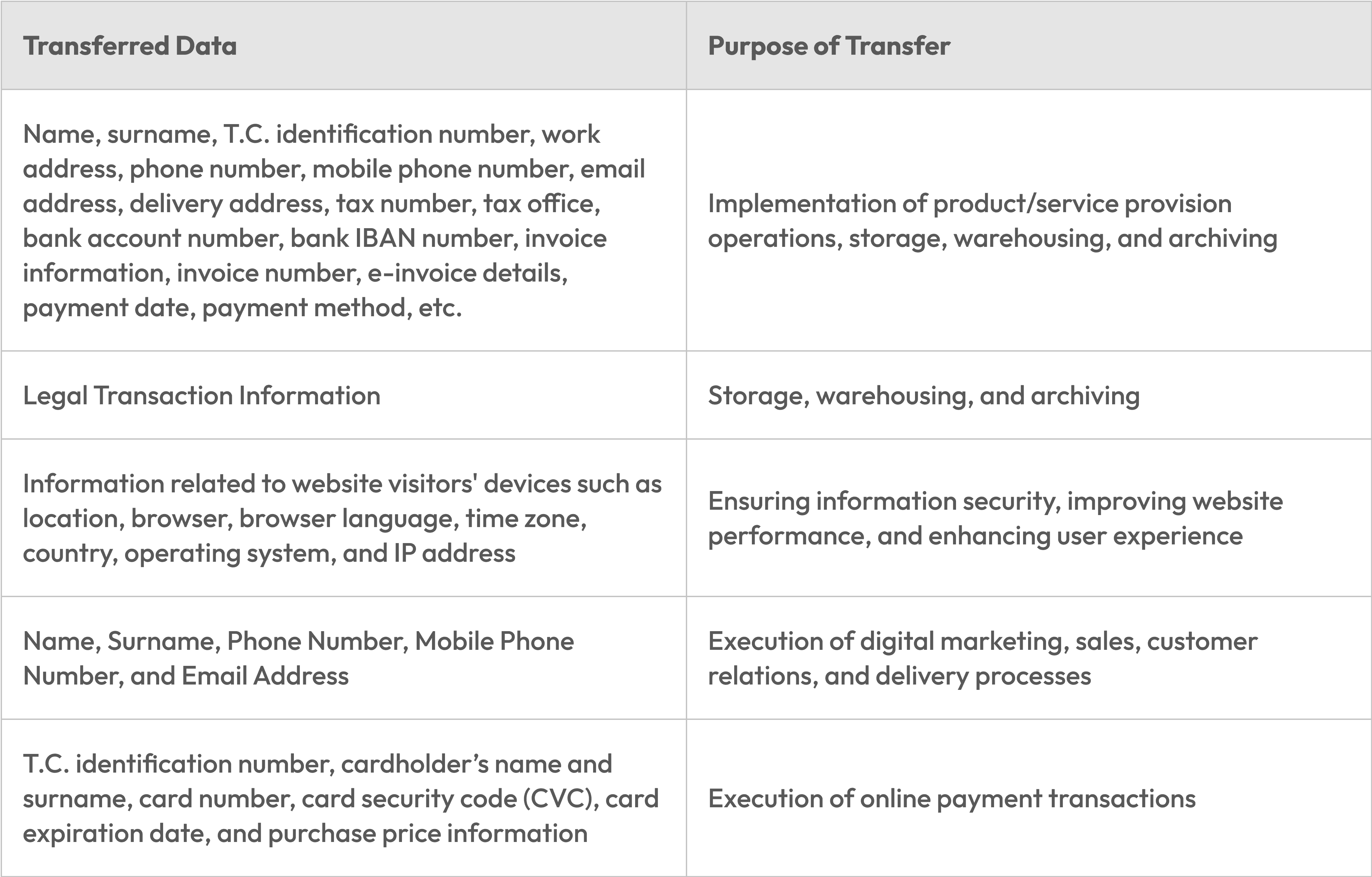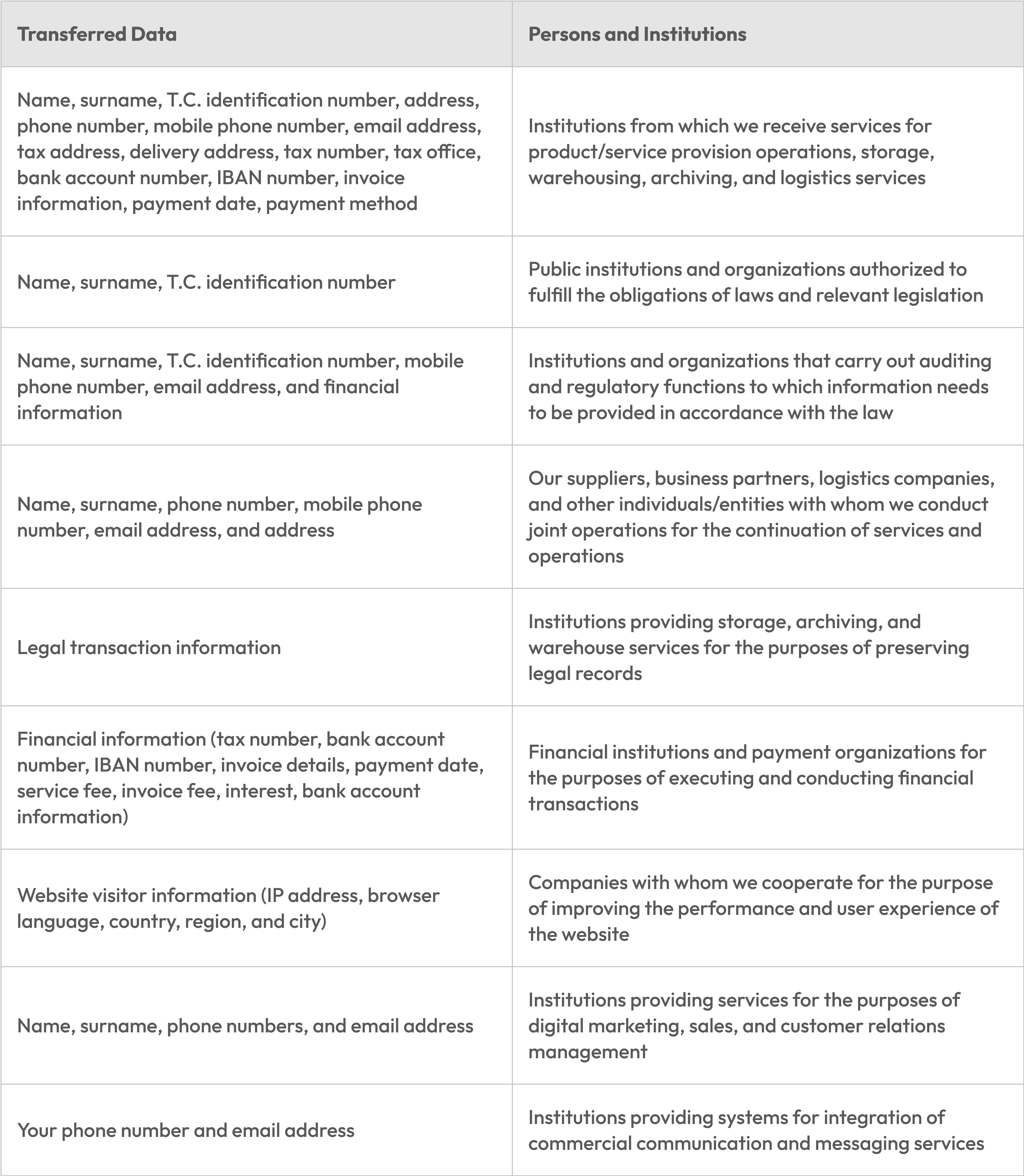 As the Data Controller, we prioritize the security of your personal data. Accordingly, any personal data processed within our company is handled, stored, and transferred in compliance with the Personal Data Protection Law No. 6698 (KVKK).