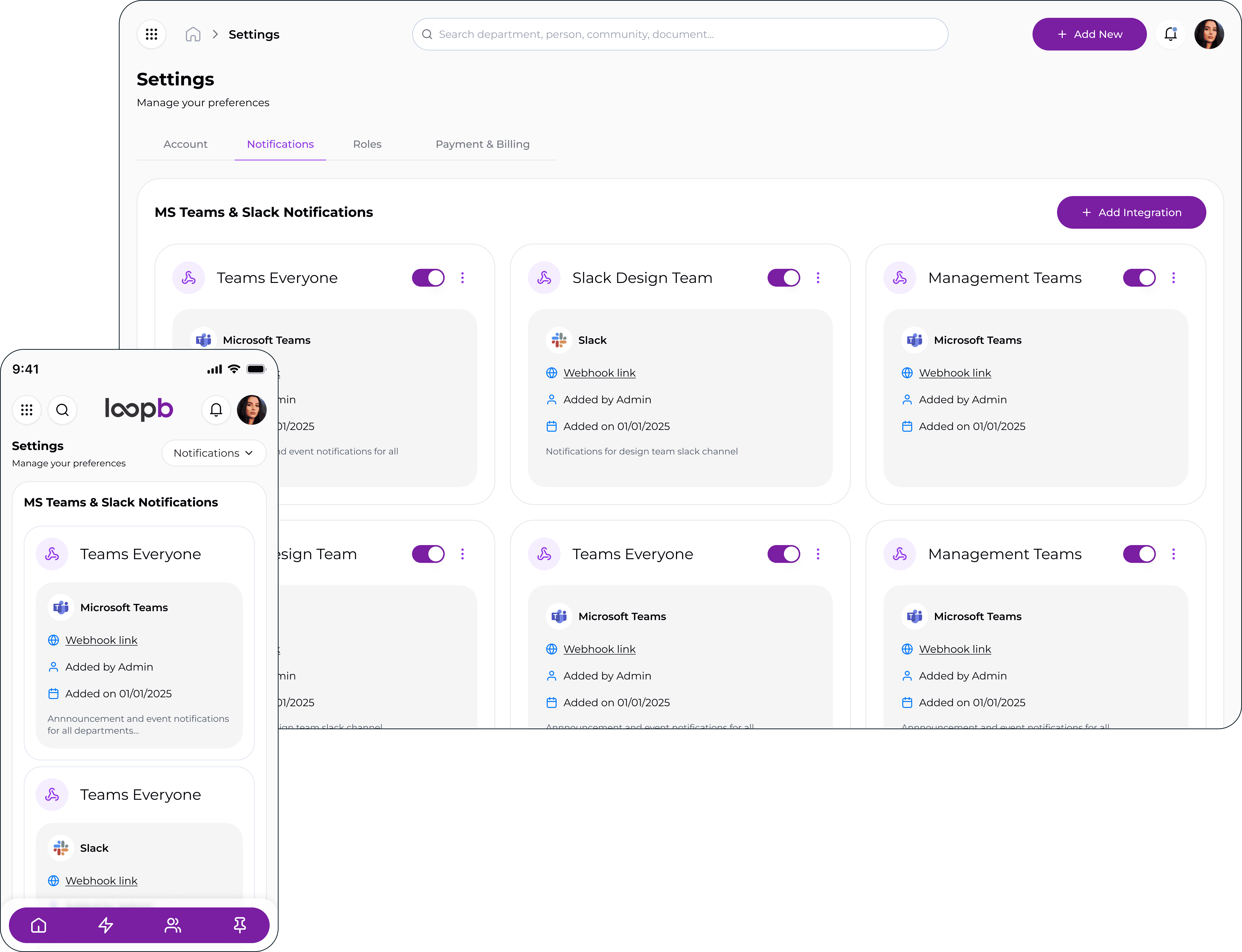LoopB integrates seamlessly with Slack and Microsoft Teams to deliver important updates directly into the channels employees already use every day. LoopB does not replace Slack/Teams. It complements them.