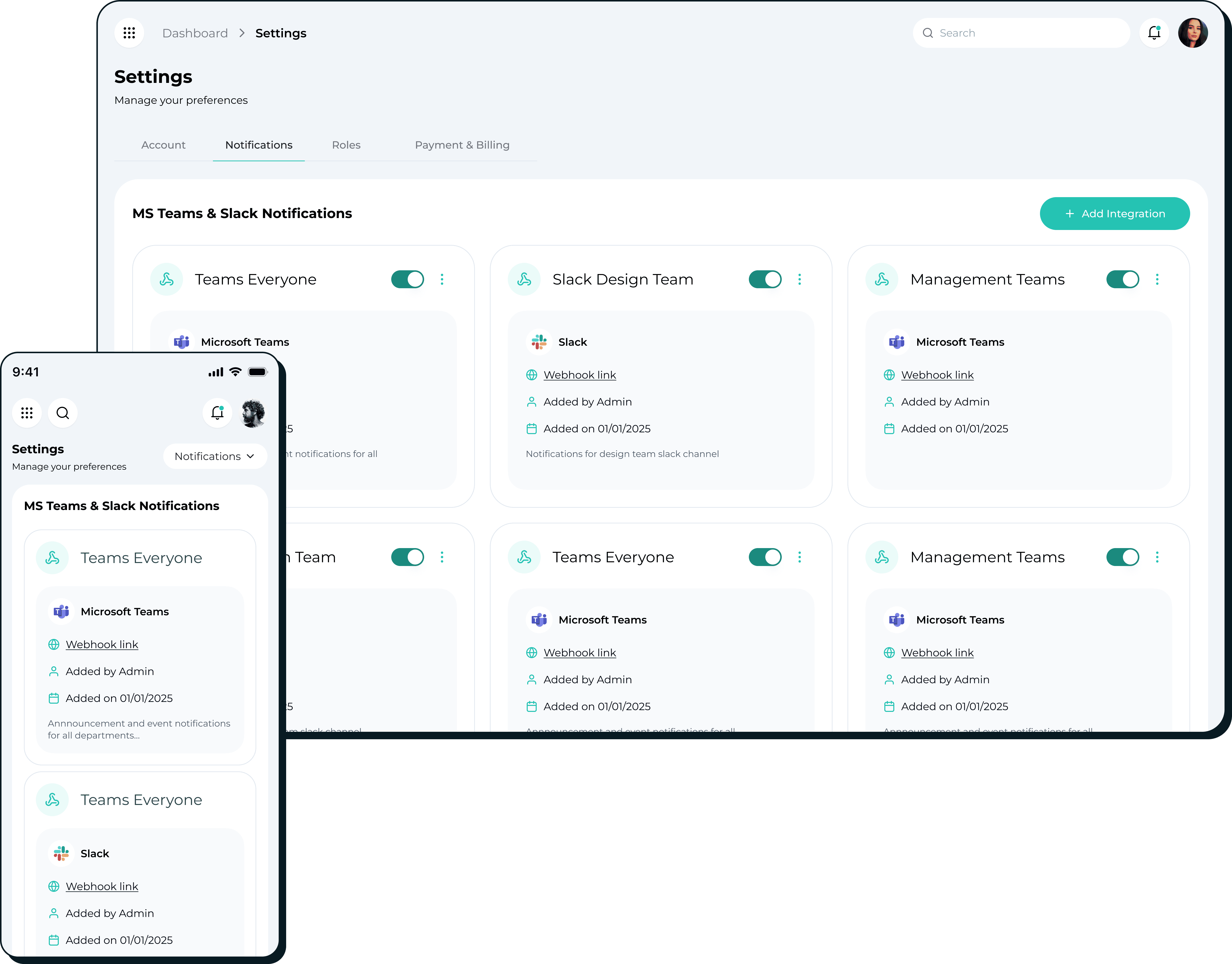 LoopB integrates seamlessly with Slack and Microsoft Teams to deliver important updates, engagement signals, and system events directly into the channels employees already use every day. LoopB does not replace Slack/Teams. It complements them.