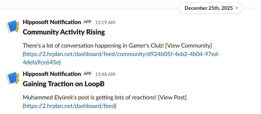 Messages sent to Slack or Teams make things clear. They have short titles, summaries, author or community information, and direct links back to LoopB. This way, employees know right away why the update is important and what to do next.