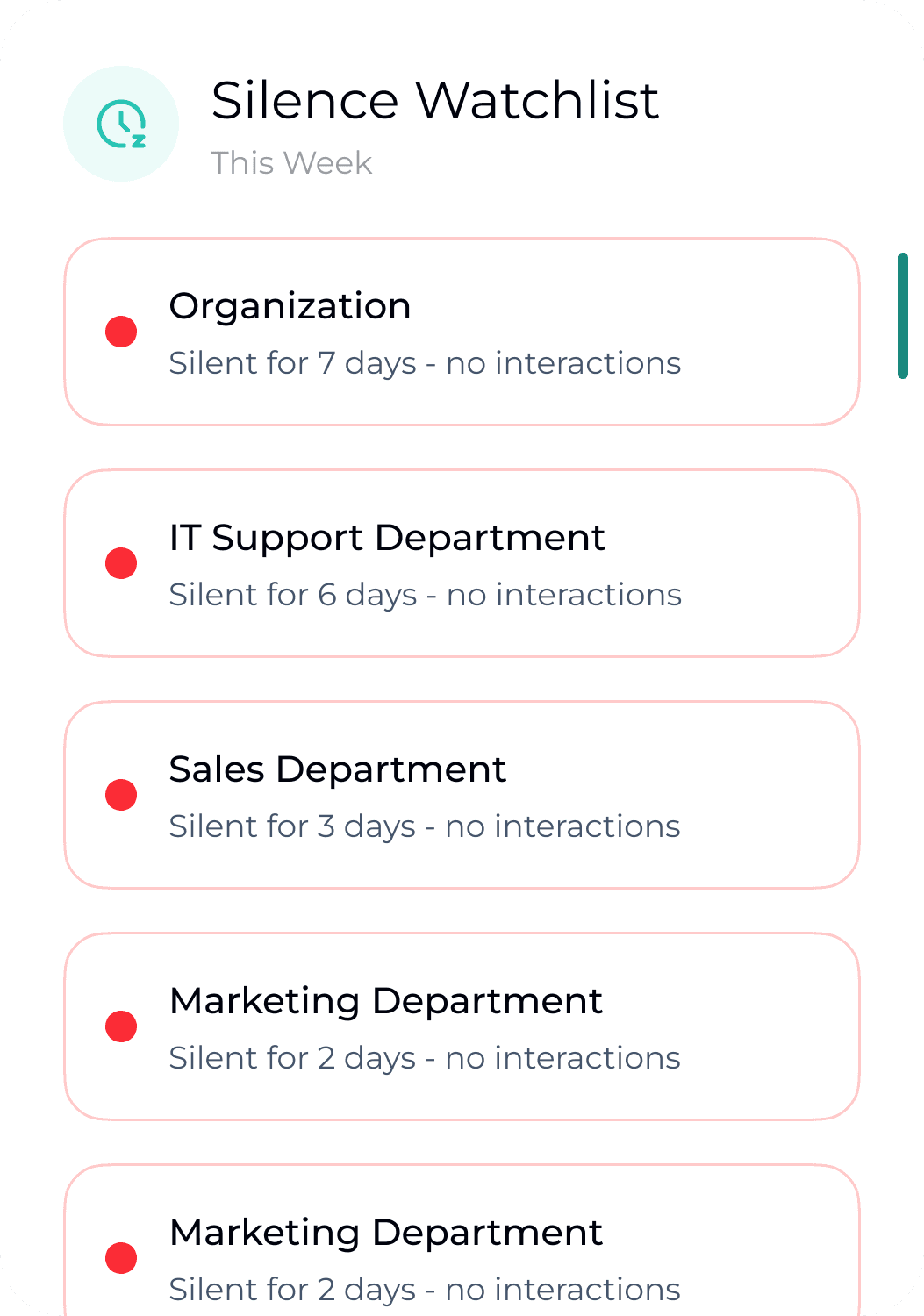 Early Culture Health Signals use simple numbers to show whether things are moving in the right direction or if there is a risk. The Engagement Momentum Score keeps track of all interactions over time and divides them by the total number of users. Silence Alerts show which departments have had no activity for a set amount of time. Being aware of something early lets you take action quickly and effectively.