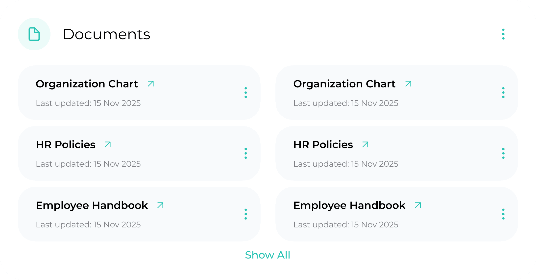 HR and Admin teams can quickly update information by adding, editing, or deleting items in each category. They can also manage multiple entries, such as contacts, addresses, or documents, and keep content up to date without needing technical help. As a result, there is less back-and-forth communication, fewer questions that are asked over and over again, and more clarity about how the organization works.